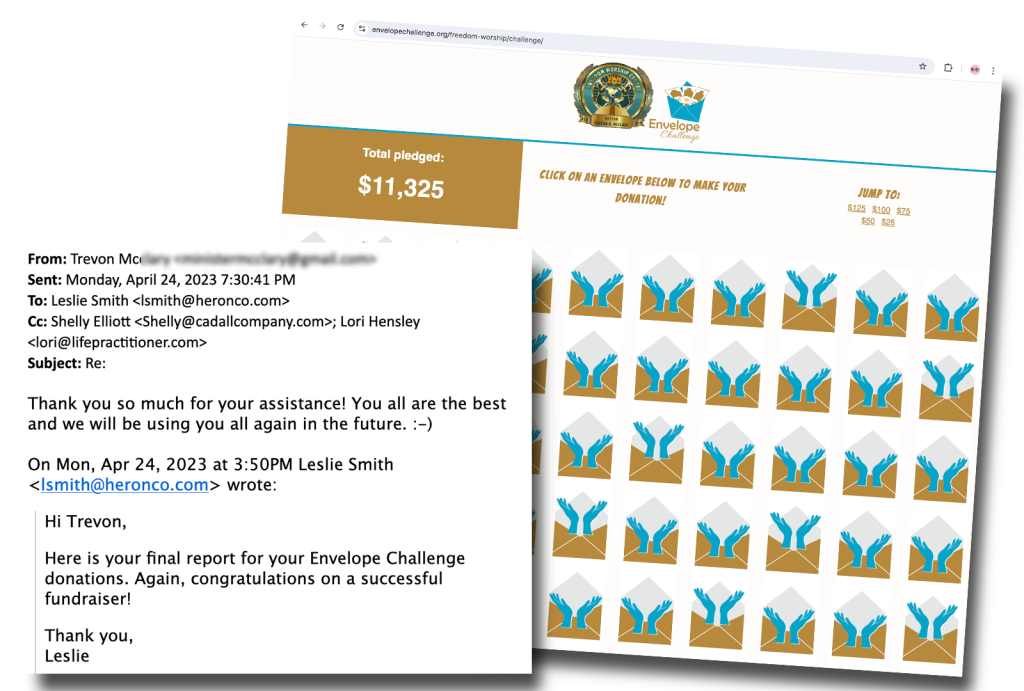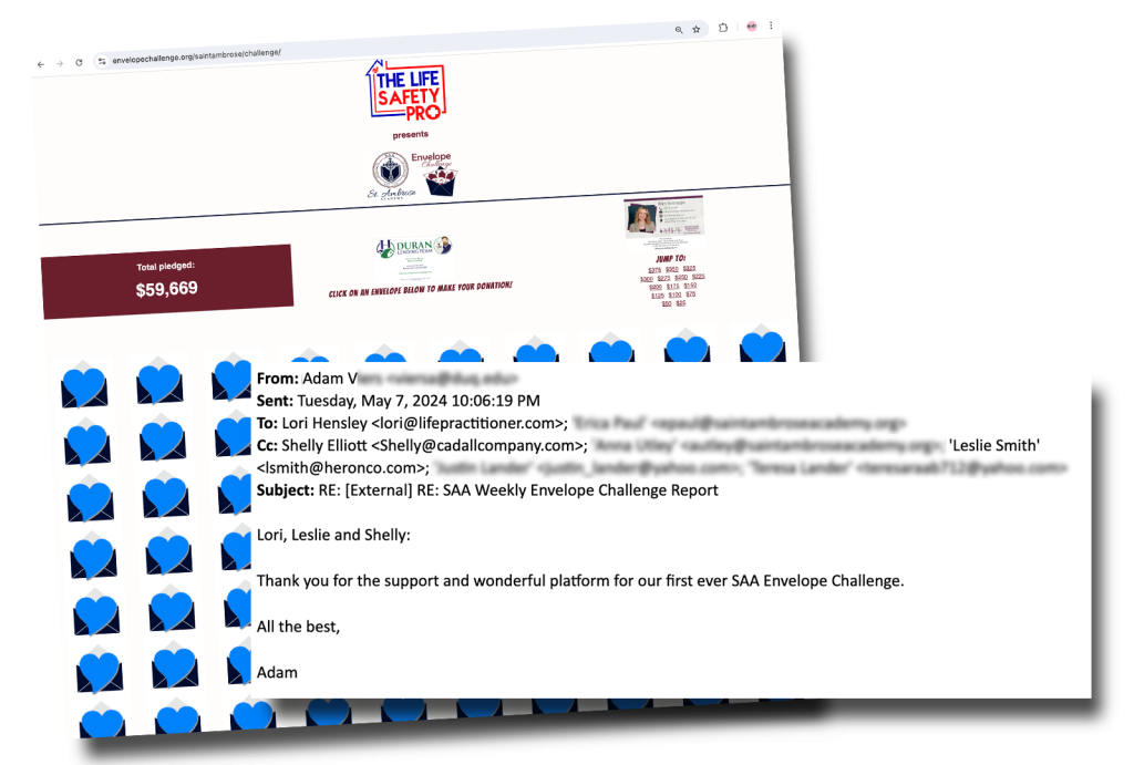 The Envelope Challenge is an online version of the popular paper envelopes-on-a-wall fundraiser featuring 150-500 envelopes.
